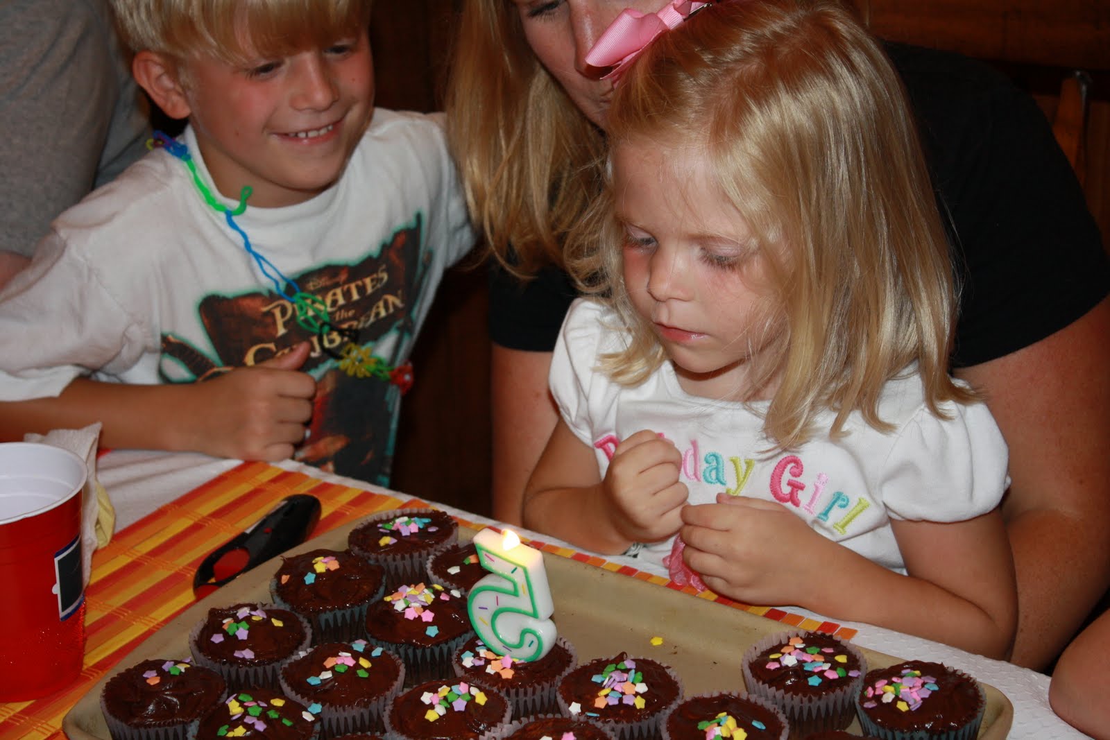This past Monday my sweet baby turned 5! I am not sure where the time has gone....seems like we just brought home our tiny, dark haired bundle and now we have a tiny, blond princess! We just had our family and the Tomlinson's over on Monday for dinner and cake. Madison requested I make bbq and she wanted chocolate cupcakes with chocolate icing and sprinkles. She is having a birthday party in a couple of weeks at Jumppity Jump...she has been planning this party since last year. It was nice to have a laid back evening where the adults could talk and the kids could play. We didn't even get many pictures since everyone was having such a great time.